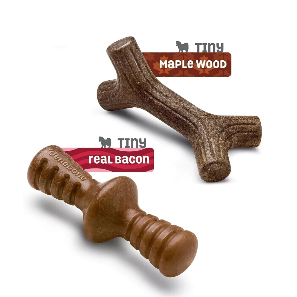 Seu filhote pode ser pequeno no tamanho, mas tem uma mordida poderosa? Então este kit é perfeito! O Benebone Kit reúne dois dos maiores sucessos da marca – o Zaggler e o Maplestick – garantindo segurança, conforto e muita diversão para o seu pequeno amigo.