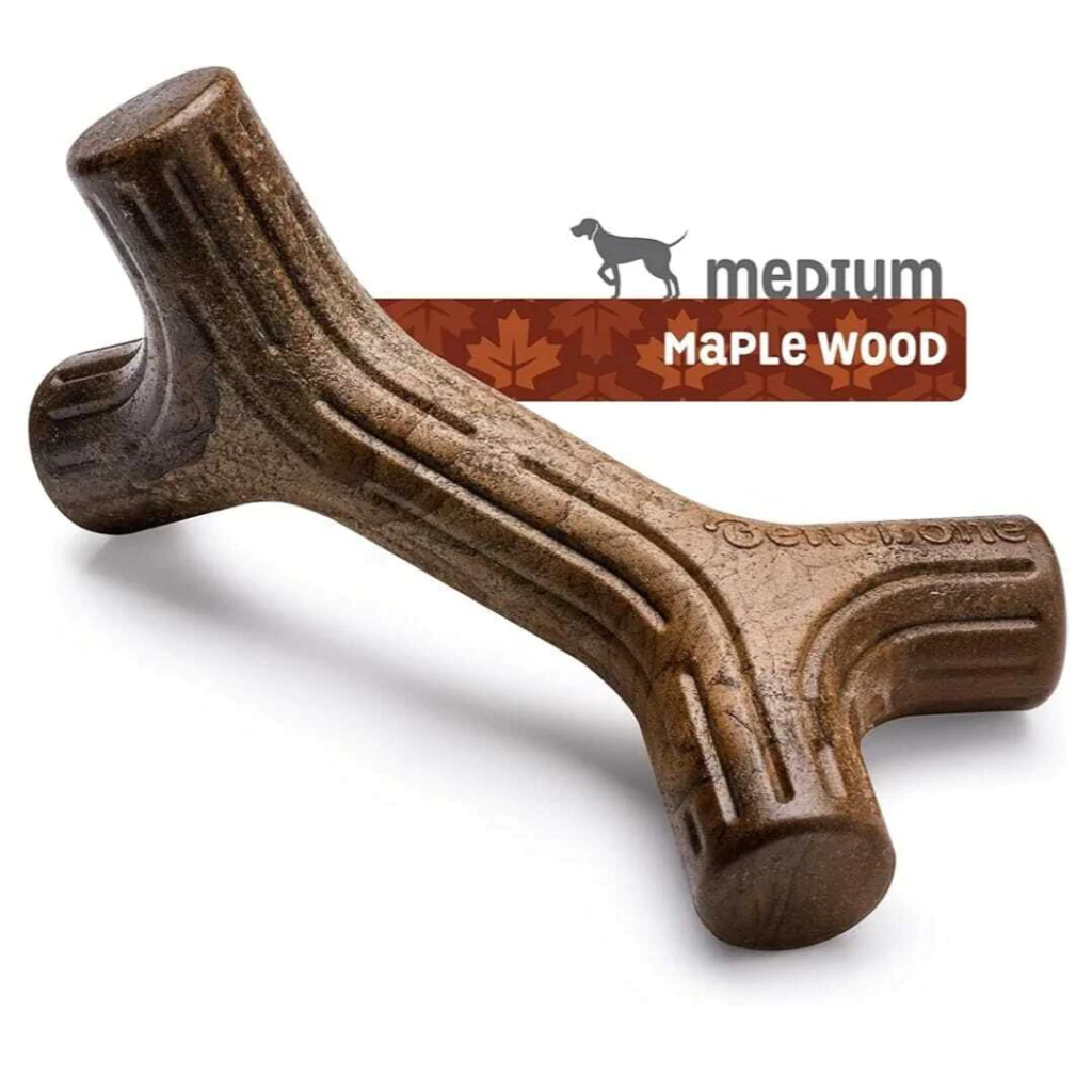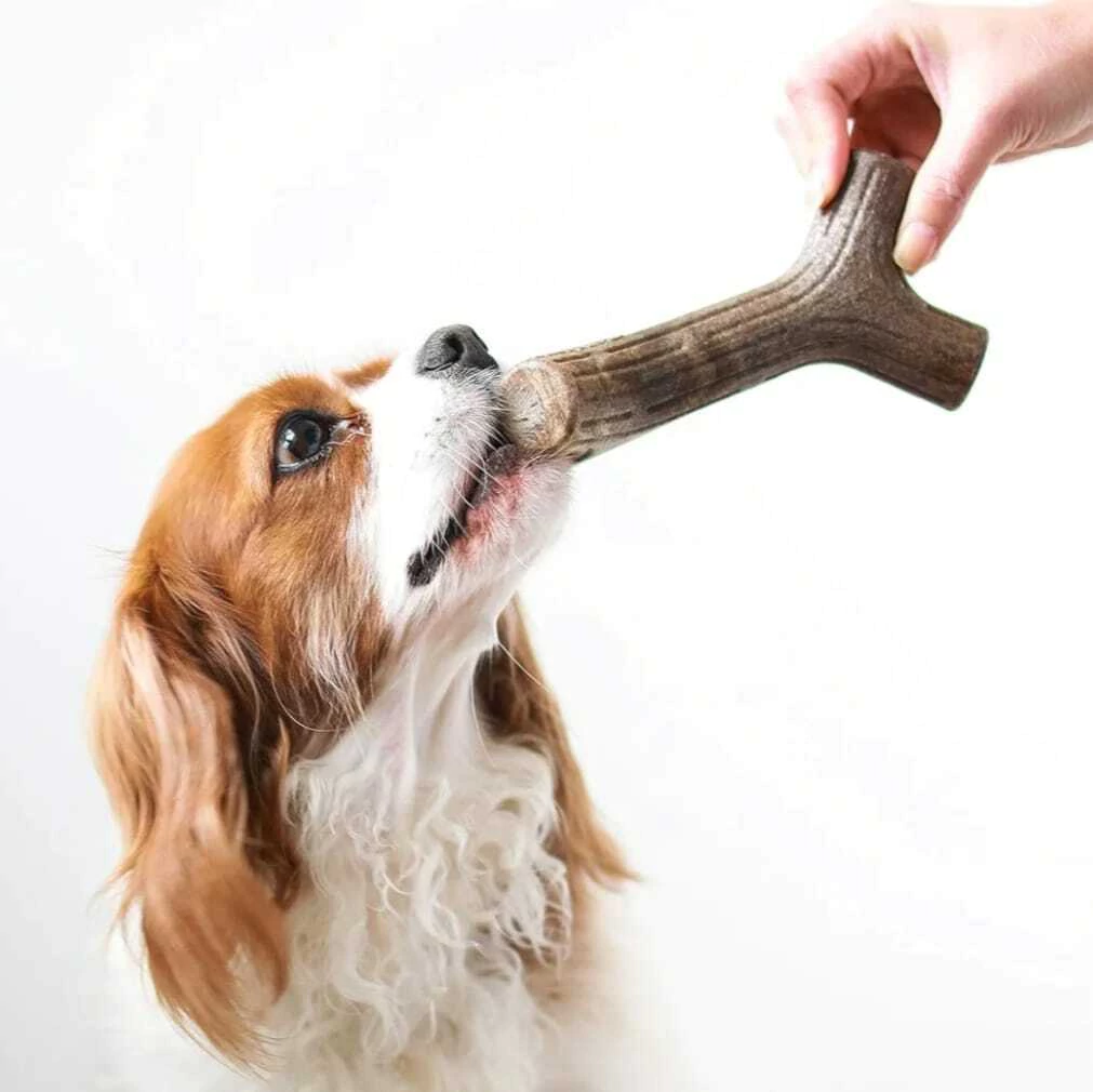 🌟 Por que os cães amam? Feito com apenas Nylon e Madeira de Maple de verdade, o Maplestick tem um formato semelhante a um graveto, permitindo que seu cão morda confortavelmente de qualquer ângulo. É o substituto perfeito para pés de cadeira e rodapés – preservando seus móveis e chinelos!
